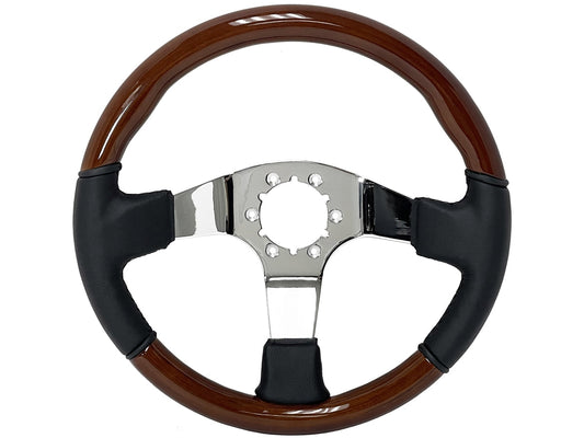 VSW 14" Mahogany / Leather Steering Wheel, 6 Bolt Chrome Spokes ST3019