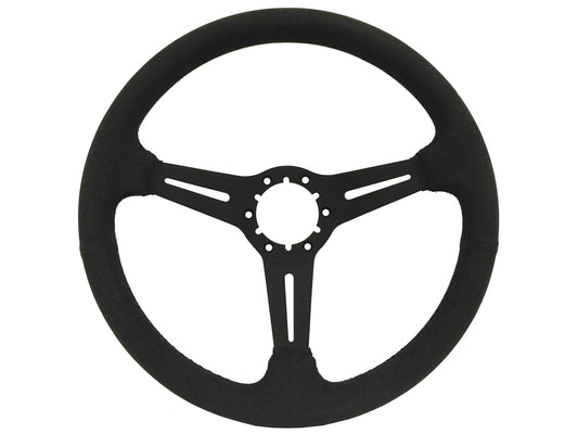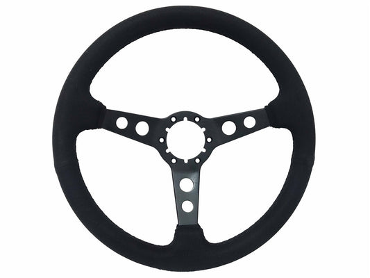 VSW 14" Black Suede Steering Wheel, 6-Bolt Black Spokes ST3582BLK