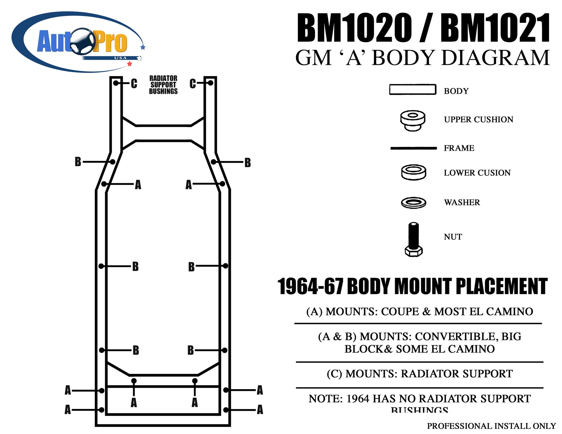 1964-1967 GM Convertible Body Mount Bushing Set, BM1021
