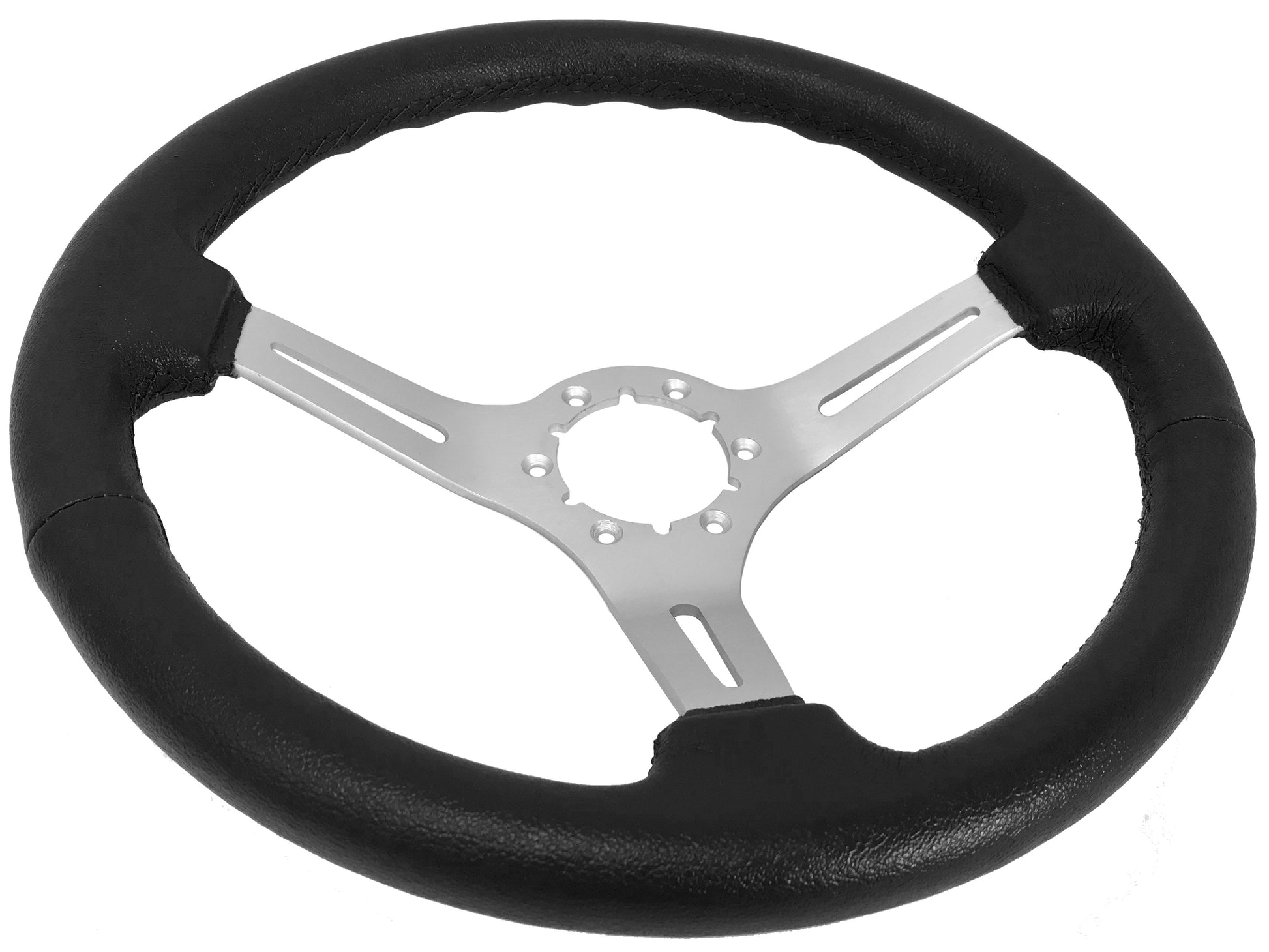 VSW 14" Black Leather Steering Wheel, 6-Bolt Brushed Spokes ST3014BLK