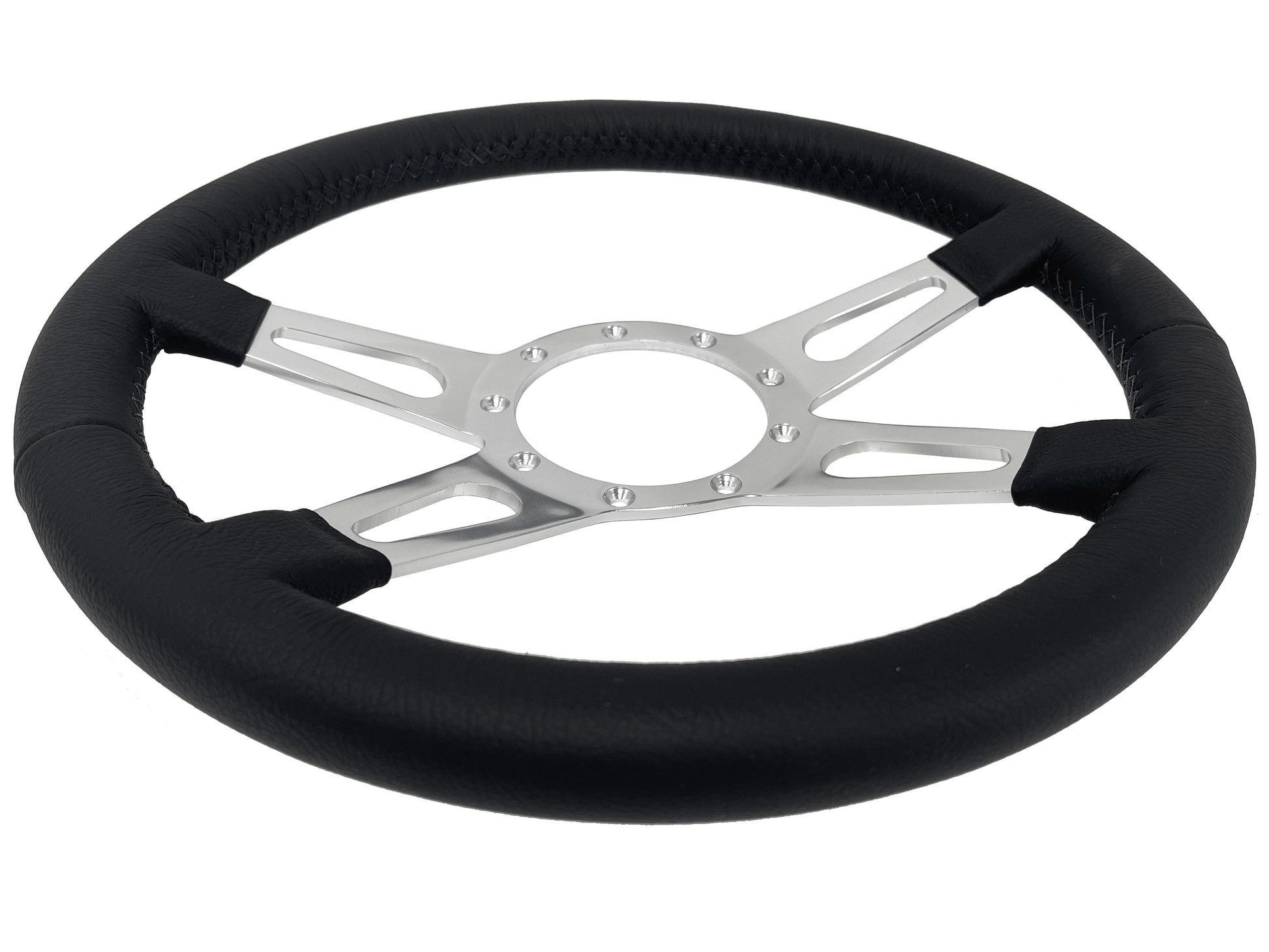 VSW 14" Black Leather Steering Wheel, 9-Bolt Billet Aluminum Spokes ST3070