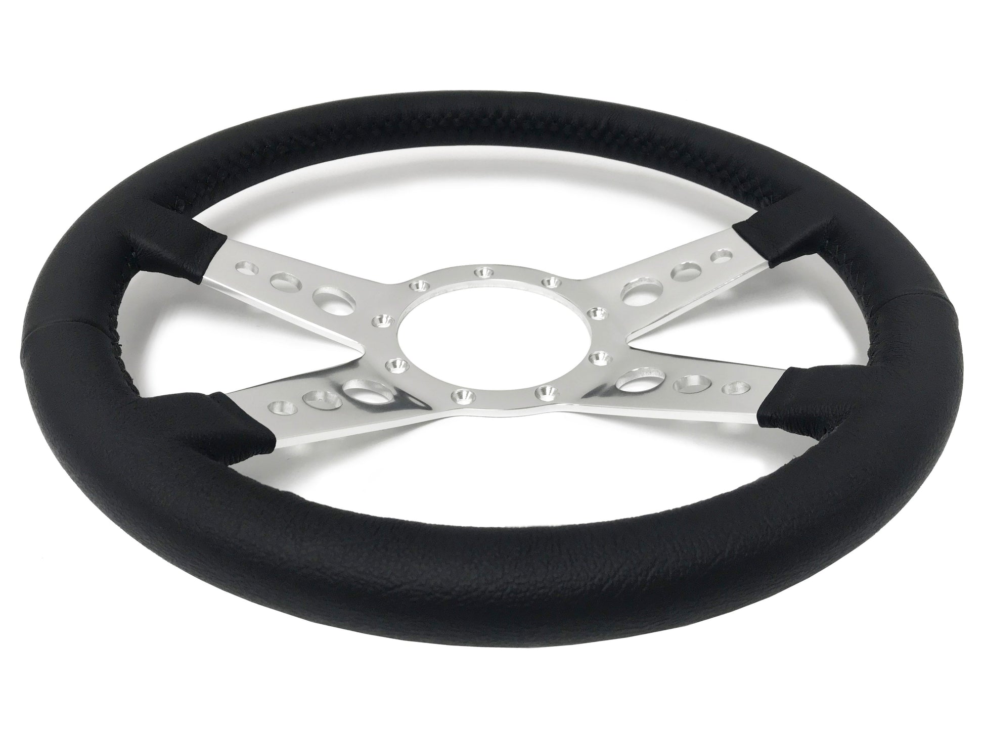 VSW 14" Black Leather Steering Wheel, 9-Bolt Billet Aluminum Spokes ST3071