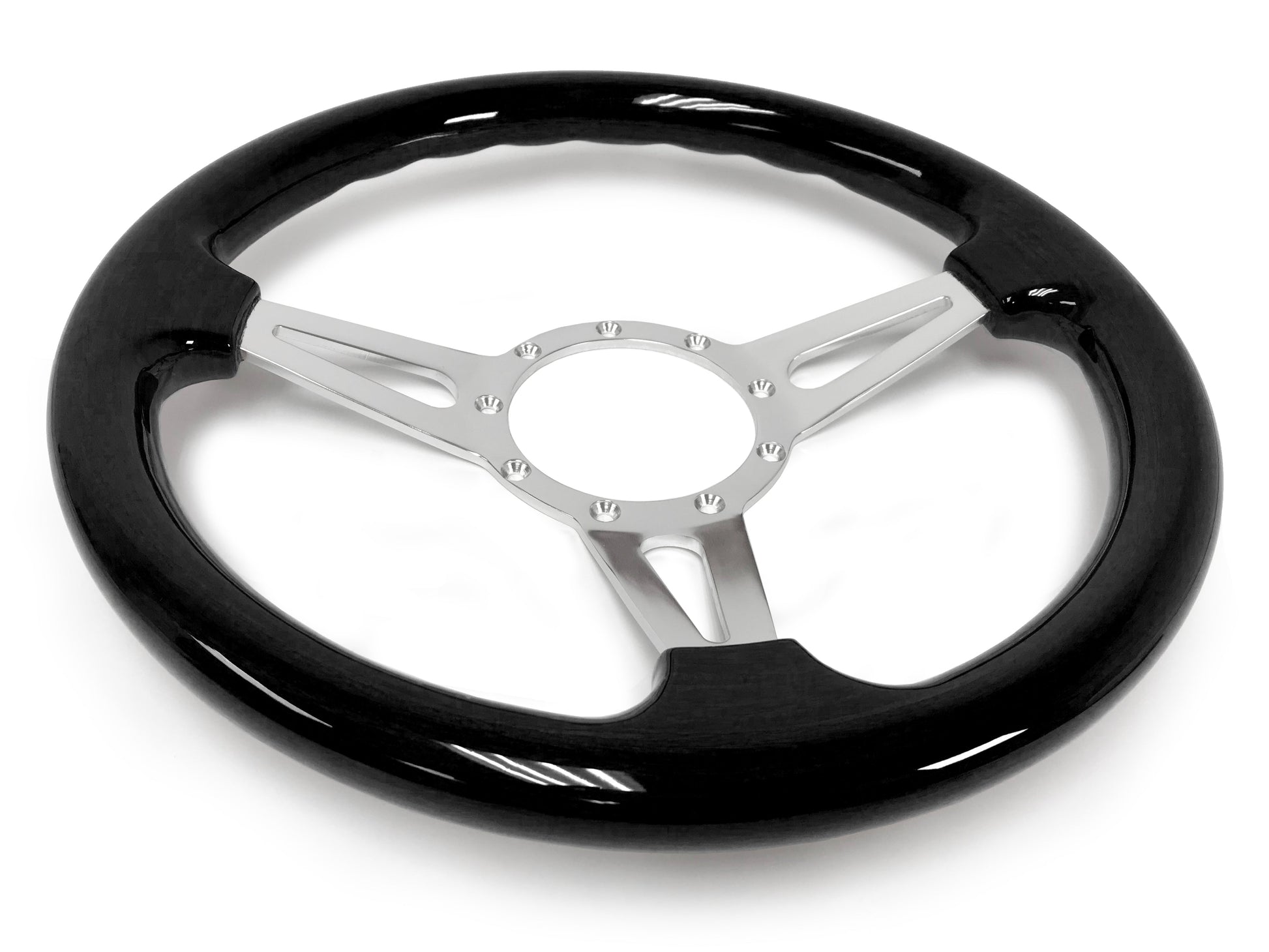 VSW 14" Black Ash Wood Steering Wheel, 9-Bolt Billet Aluminum Spokes ST3077
