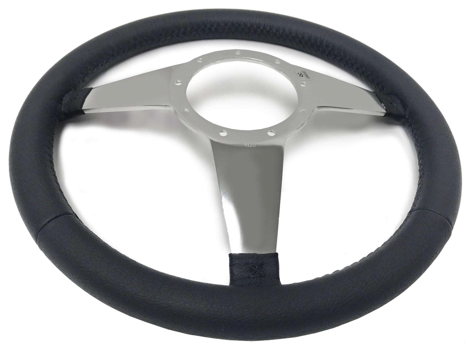 VSW 14" Black Leather Steering Wheel, 9-Bolt Billet Aluminum Spokes ST3087