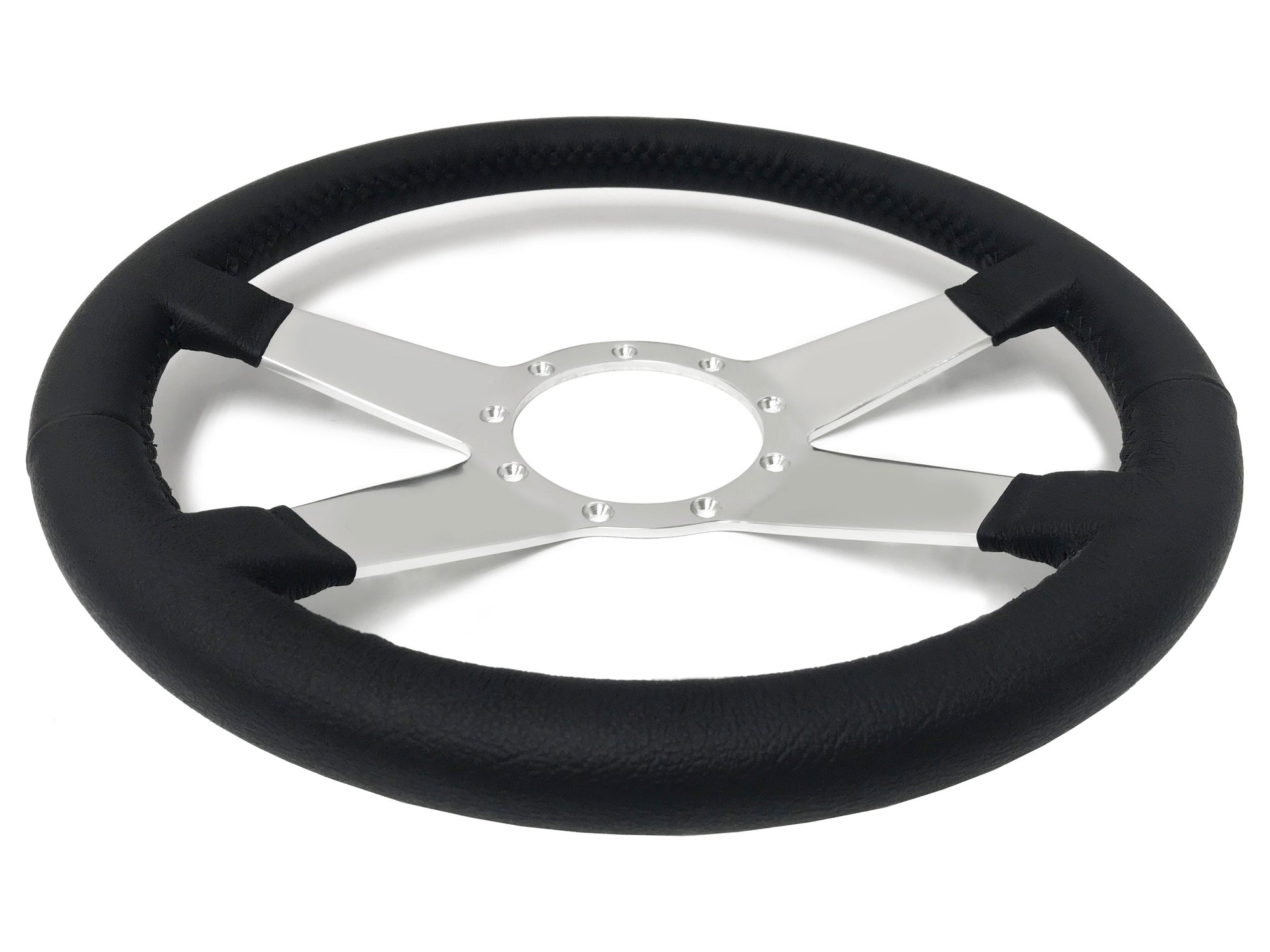 VSW 14" Black Leather Steering Wheel, 9-Bolt Billet Aluminum Spokes ST3088