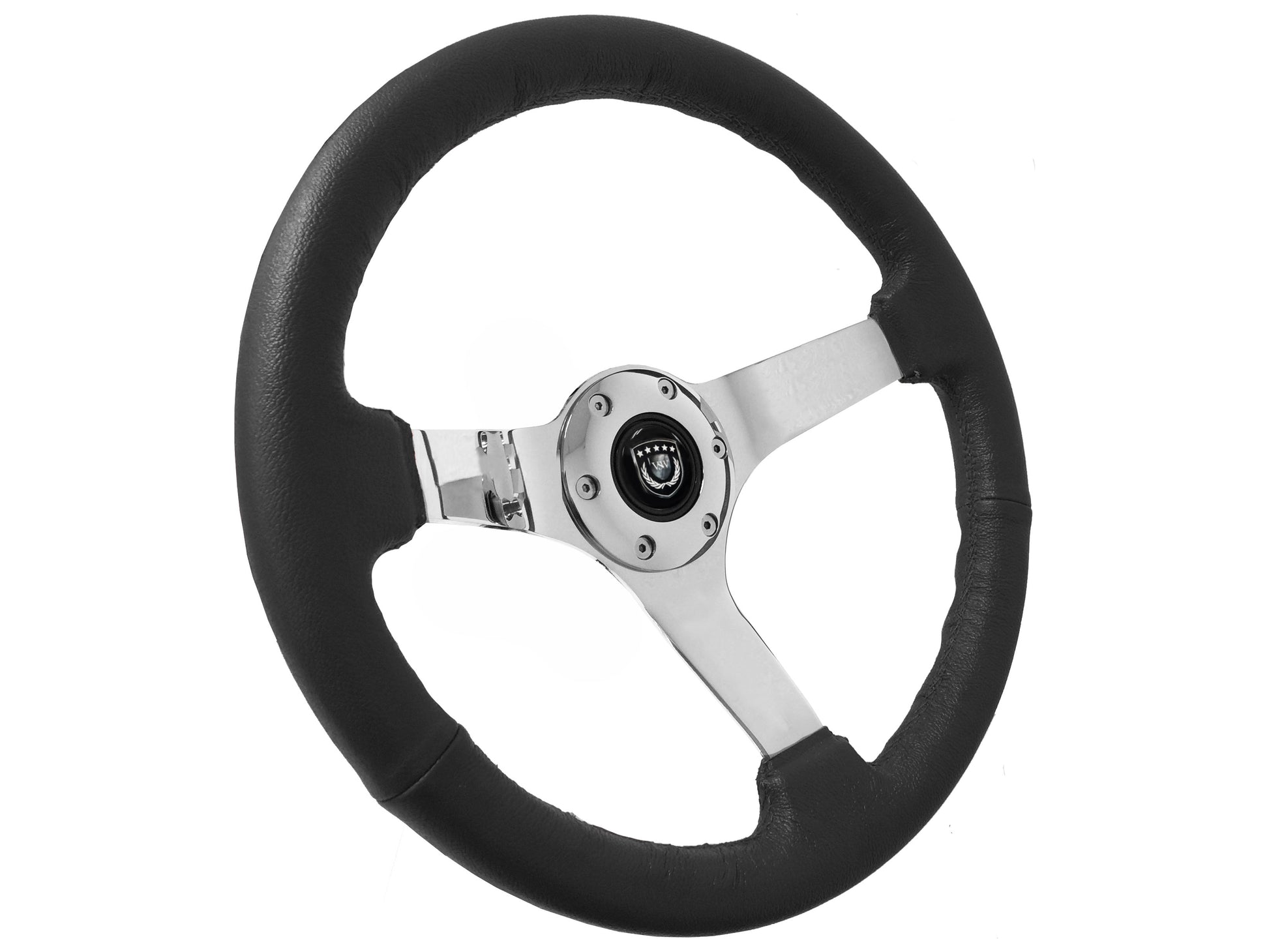 VSW 14" Black Leather Steering Wheel, 6-Bolt Chrome Spokes ST3112BLK