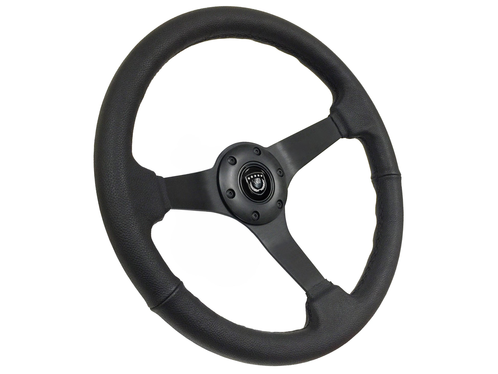 VSW 14" Black Leather Steering Wheel, 6-Bolt Black Spokes ST3160BLK