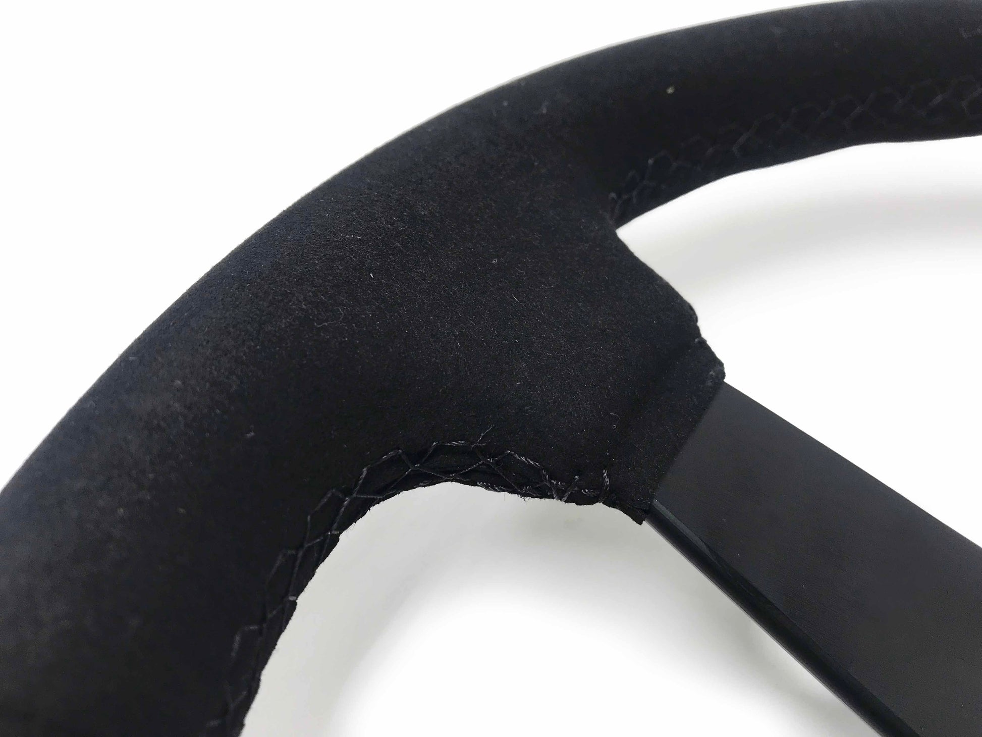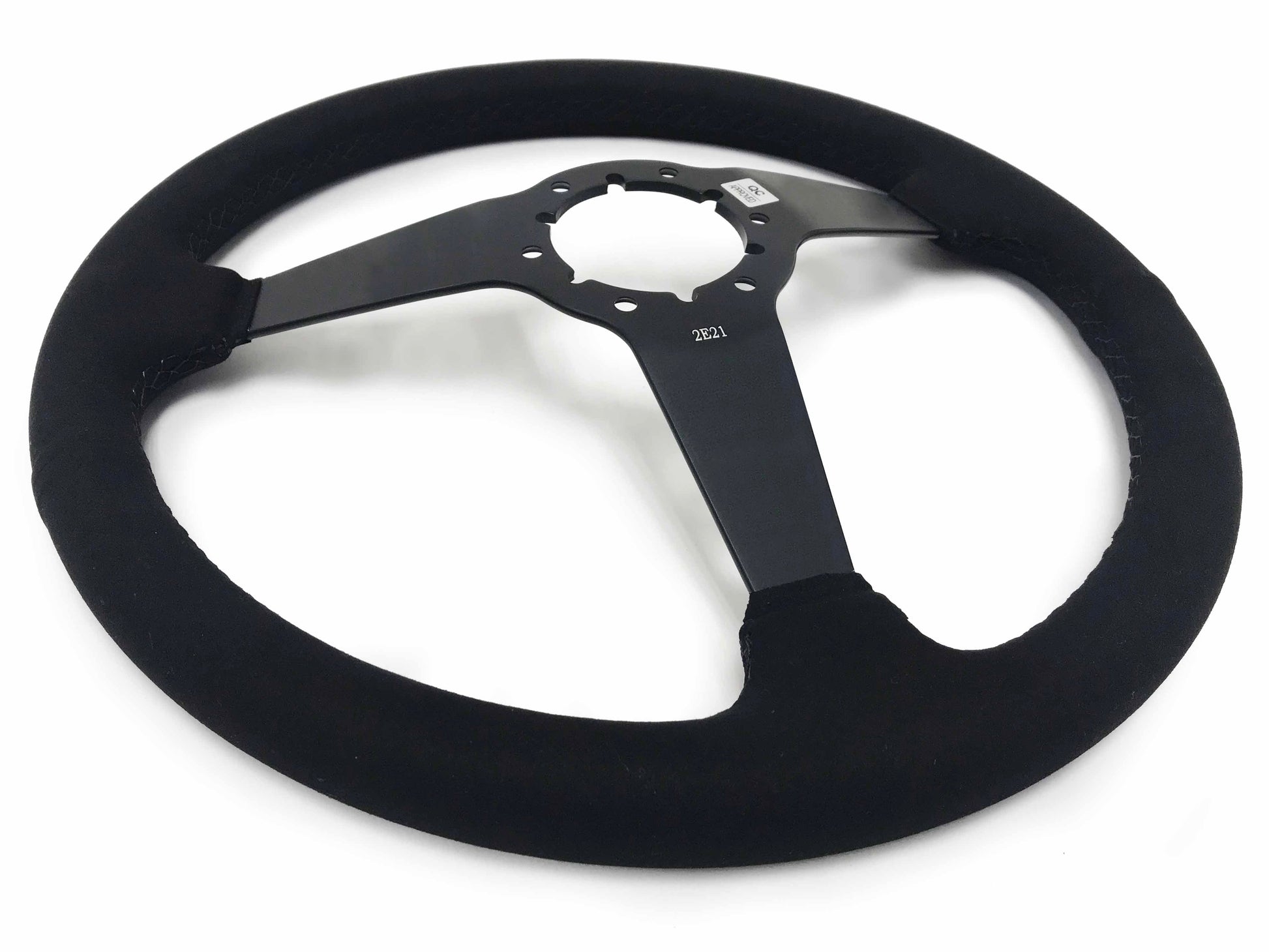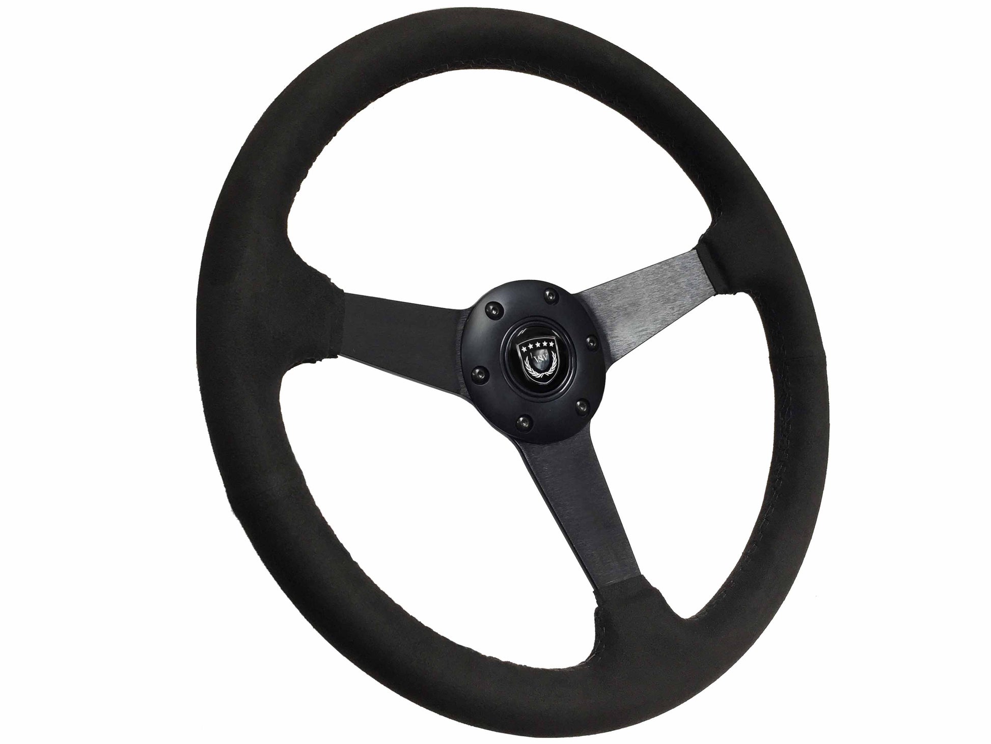 VSW 14" Black Suede Steering Wheel, 6-Bolt Black Spokes ST3582BLK