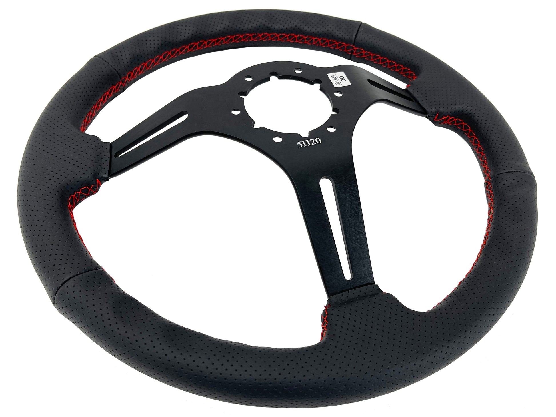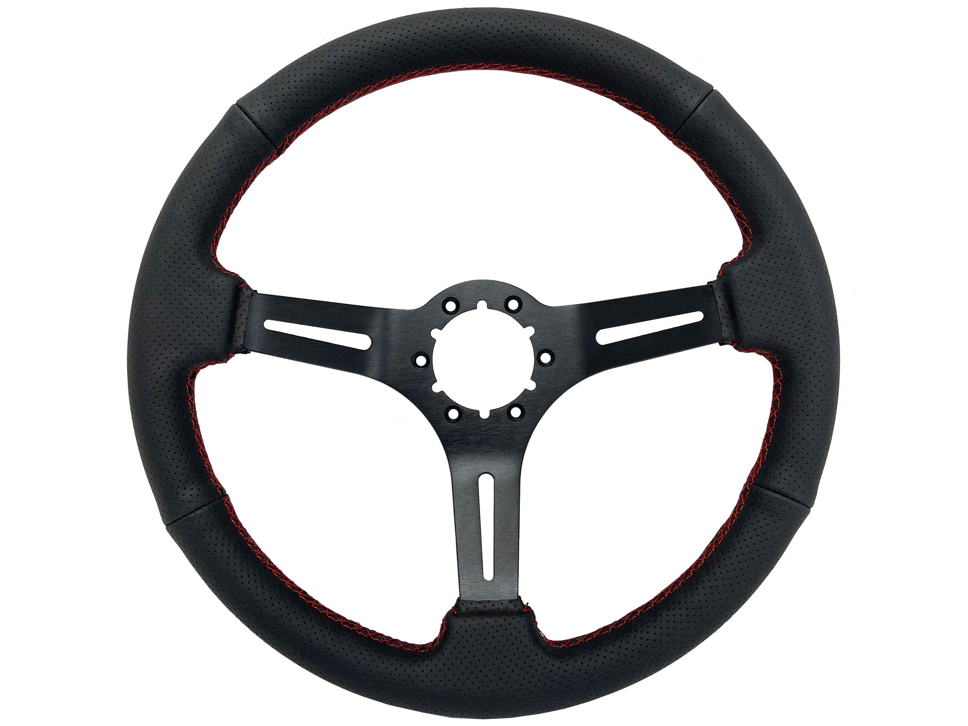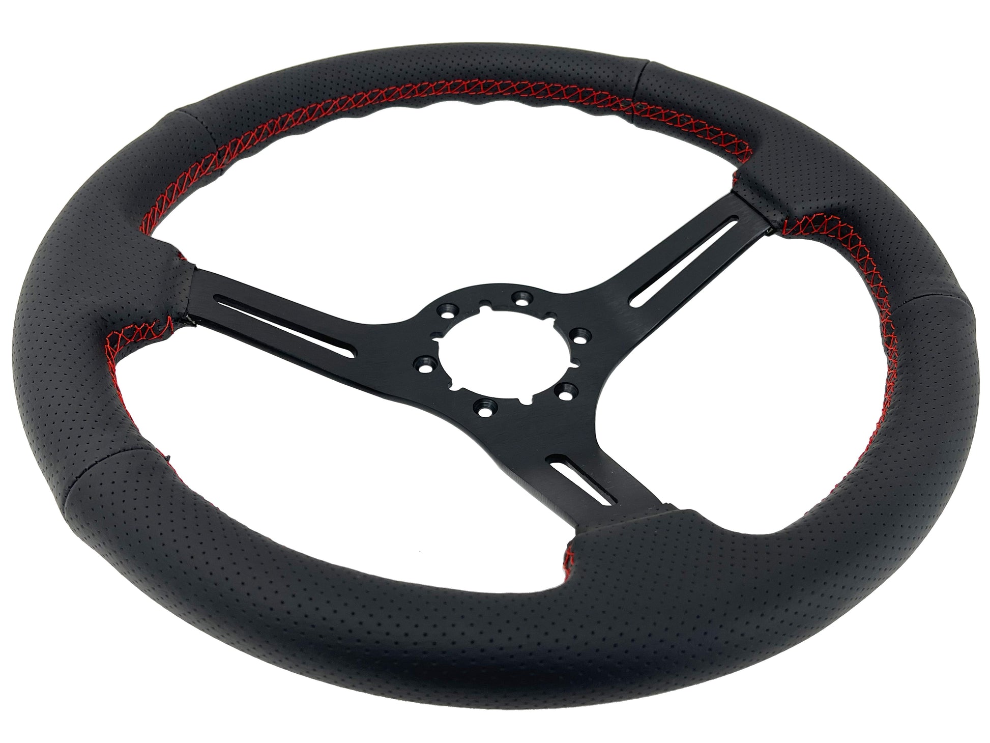 VSW 14" Black Perforated Leather Steering Wheel with Red Stitch, 6-Bolt Black Spokes ST3586RED